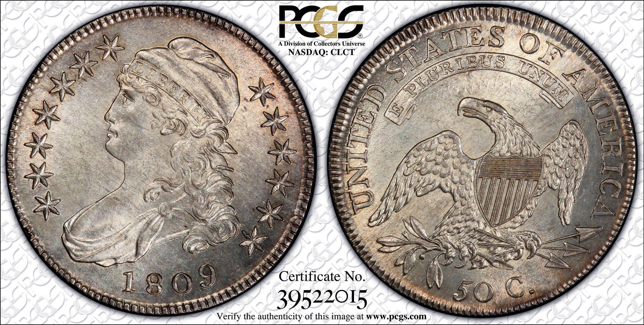 此证书是目前出现在 DLH Set Registry库存和的一个set或多个set,其中包括 D. L. Hansen. Bust Half Dollar. Major Varieties