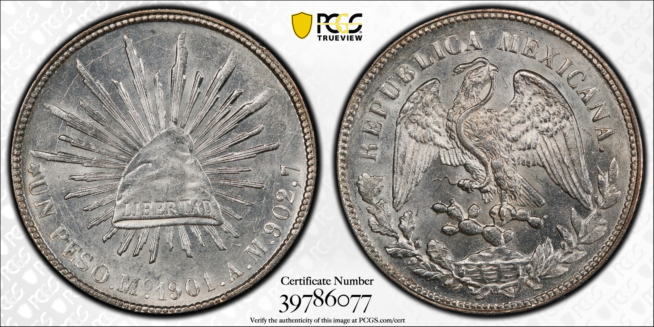 根据 PCGS 认证数据库,请求的认证编号被定义为以下内容: