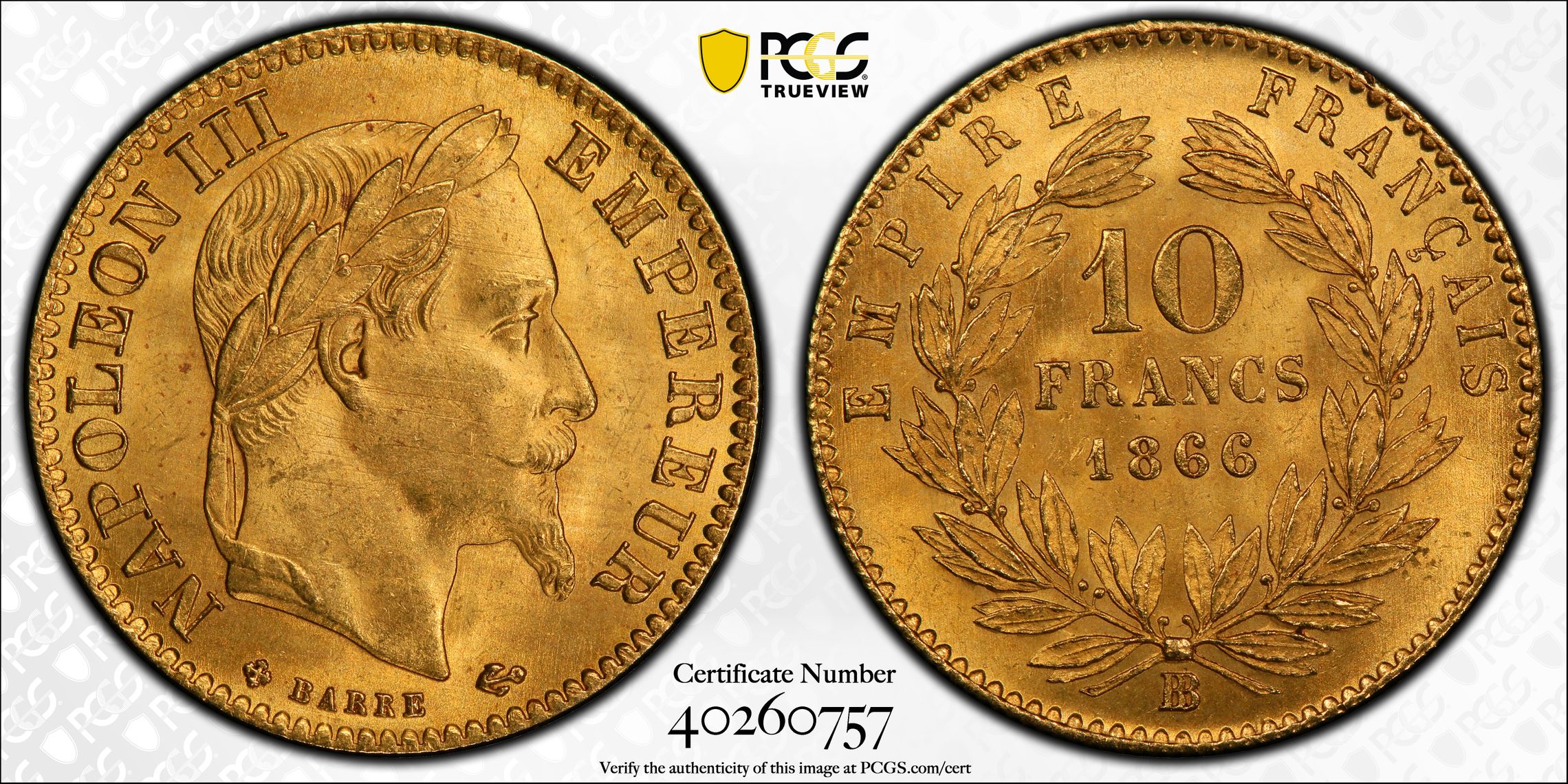 根据 PCGS 认证数据库,请求的认证编号被定义为以下内容: