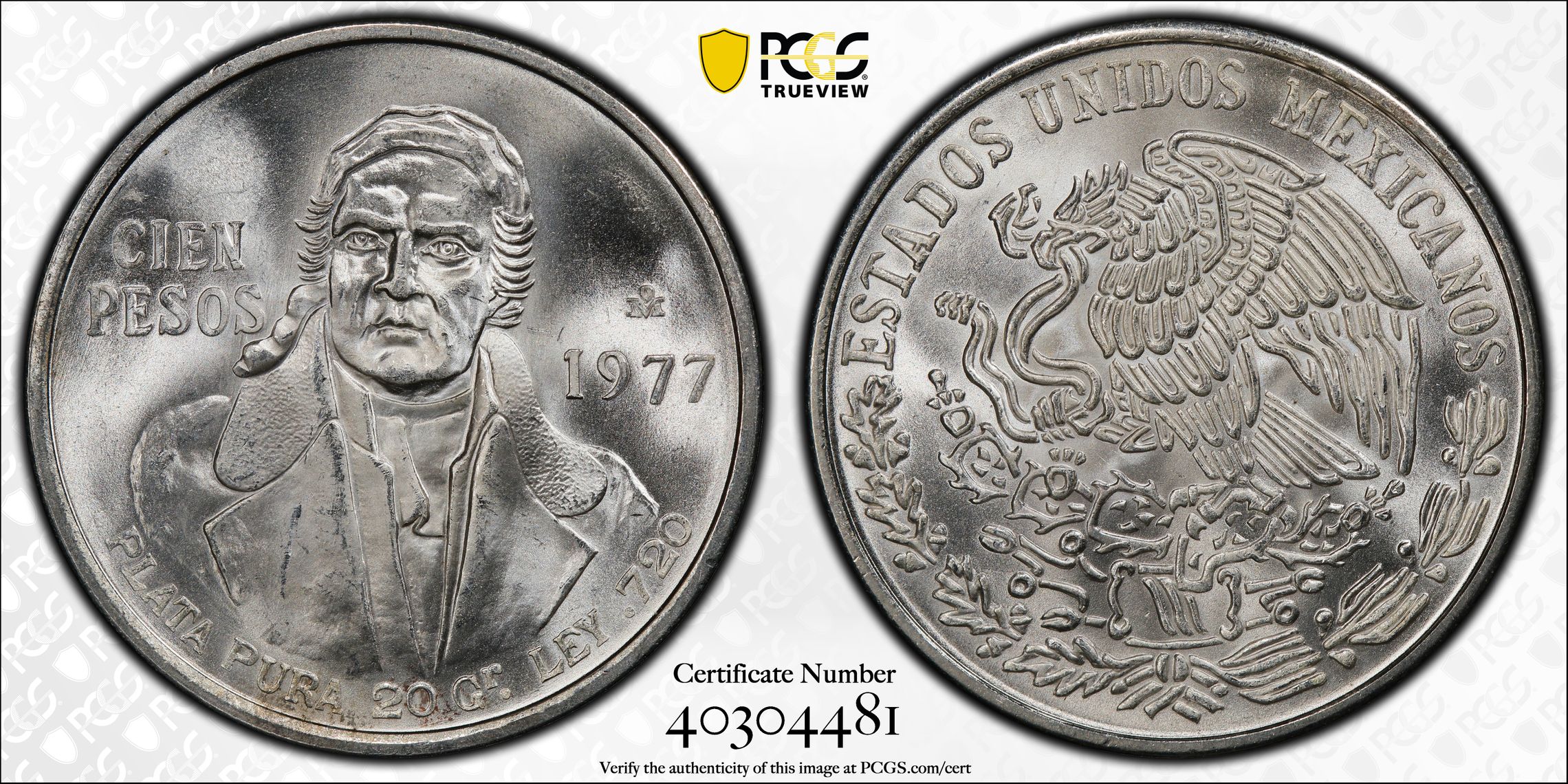 根据 PCGS 认证数据库,请求的认证编号被定义为以下内容: