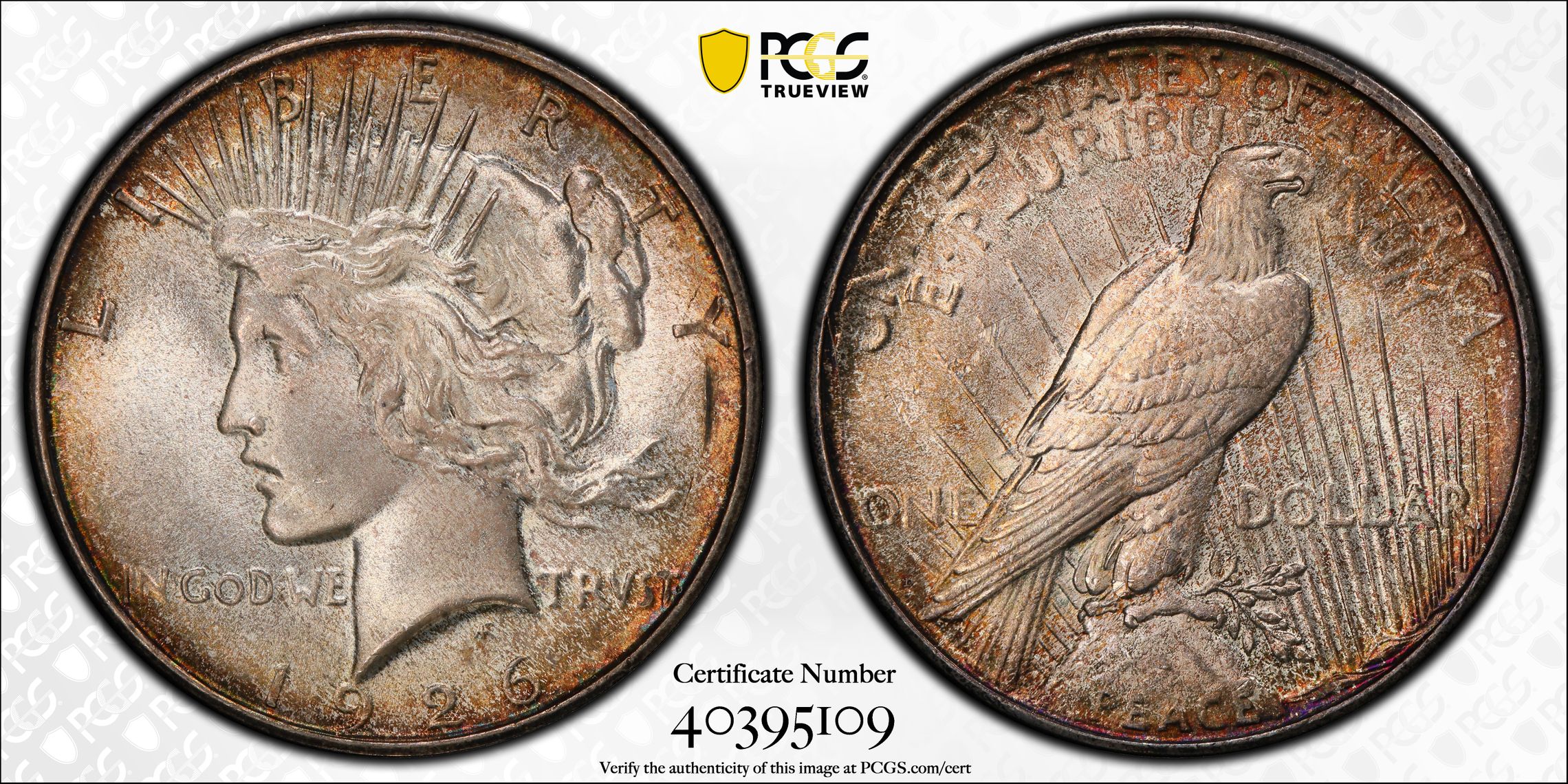 此证书是目前出现在 Anablep Set Registry库存和的一个set或多个set,其中包括 Toned Peace Dollars, Wayne's Date Set