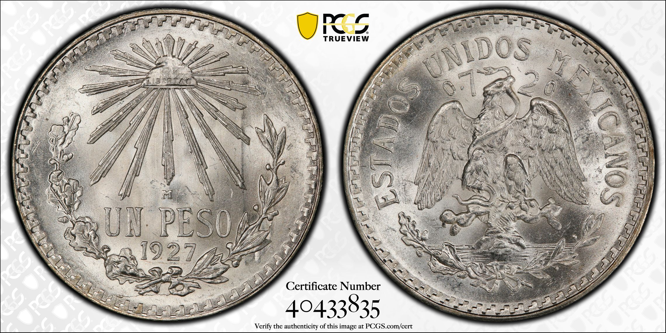 根据 PCGS 认证数据库,请求的认证编号被定义为以下内容: