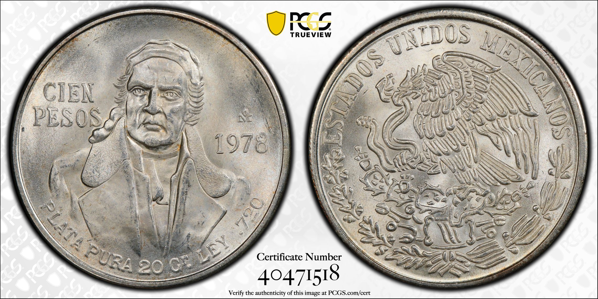 根据 PCGS 认证数据库,请求的认证编号被定义为以下内容:
