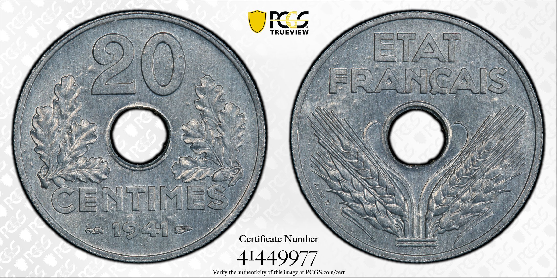 根据 PCGS 认证数据库,请求的认证编号被定义为以下内容: