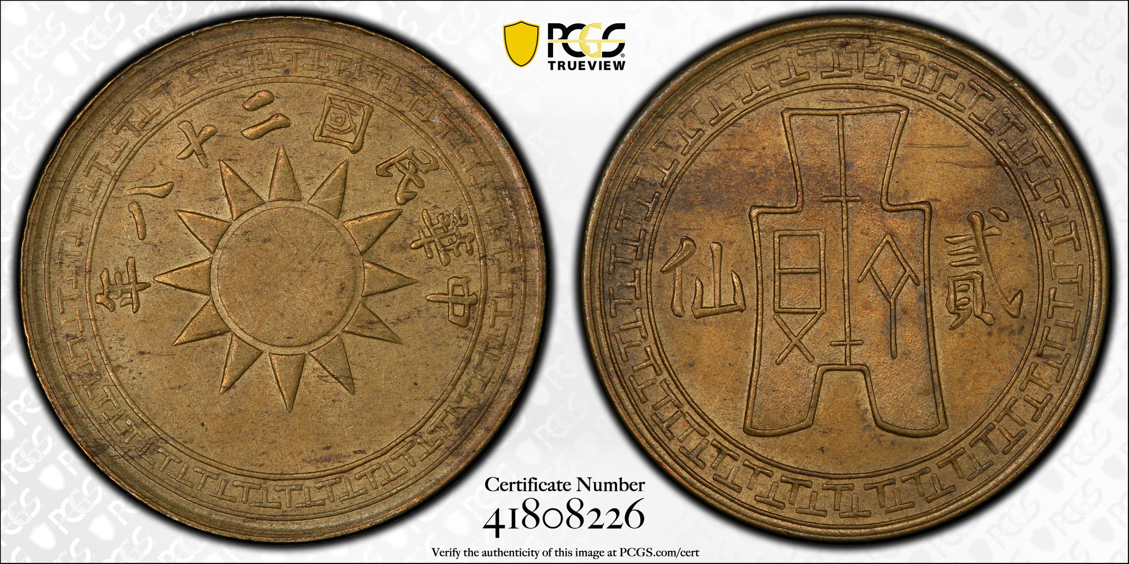 根据 PCGS 认证数据库,请求的认证编号被定义为以下内容: