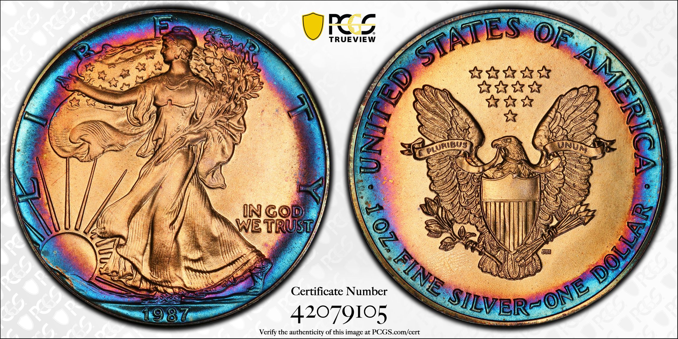 此证书是目前出现在 Patty74 Set Registry库存和的一个set或多个set,其中包括 Rainbow American Silver Eagles