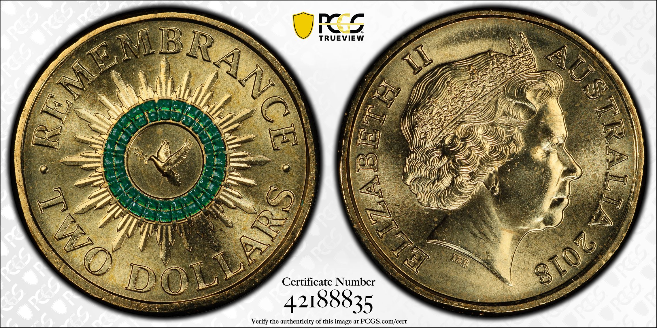 版别 Remembrance Dove Colorized 30th Ann. $2 Coin