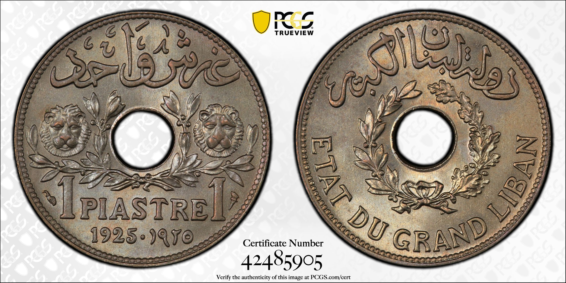 根据 PCGS 认证数据库,请求的认证编号被定义为以下内容: