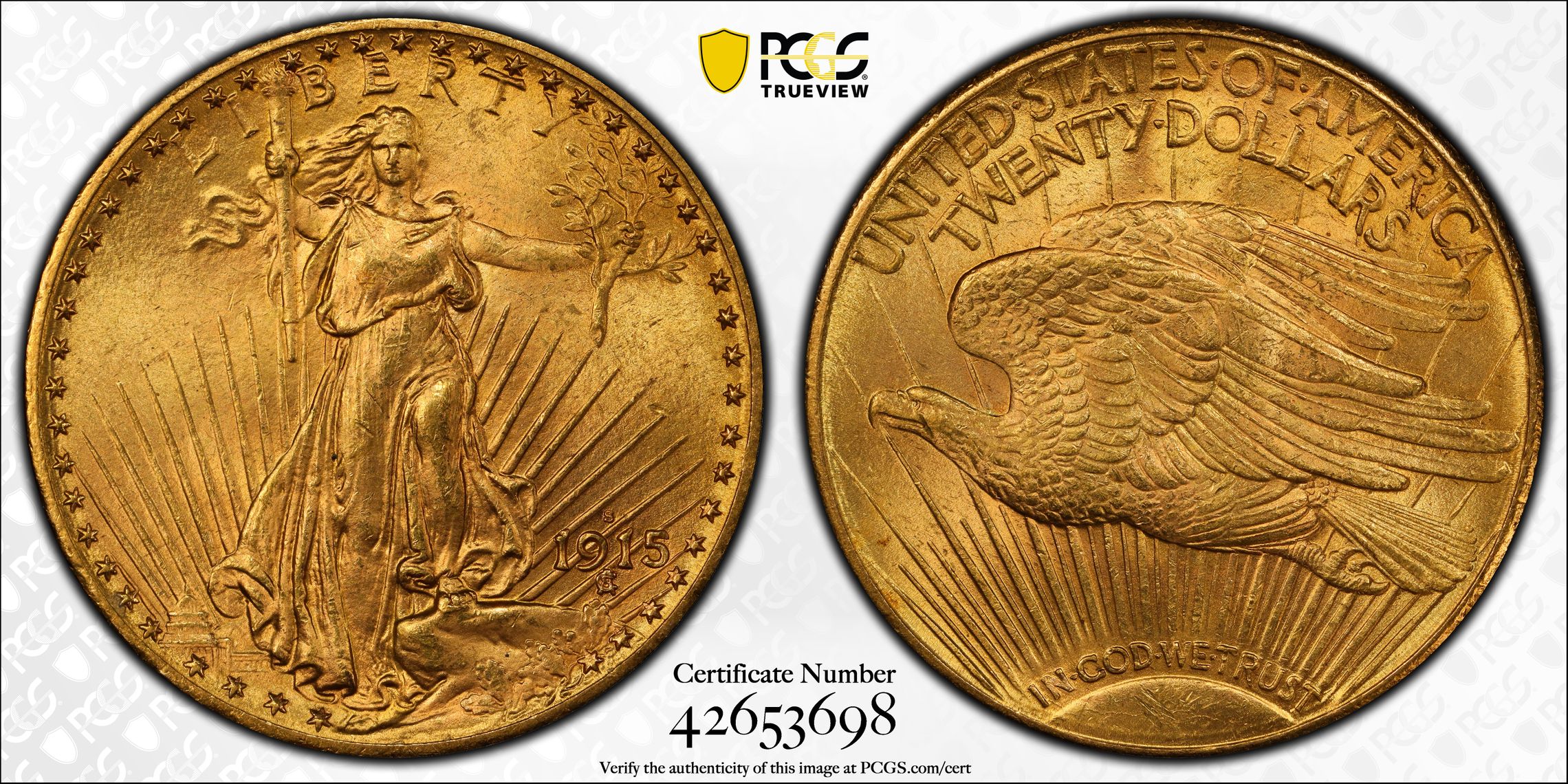 此证书是目前出现在 55Baldy Set Registry库存和的一个set或多个set,其中包括 MDB's St. Gaudens $20