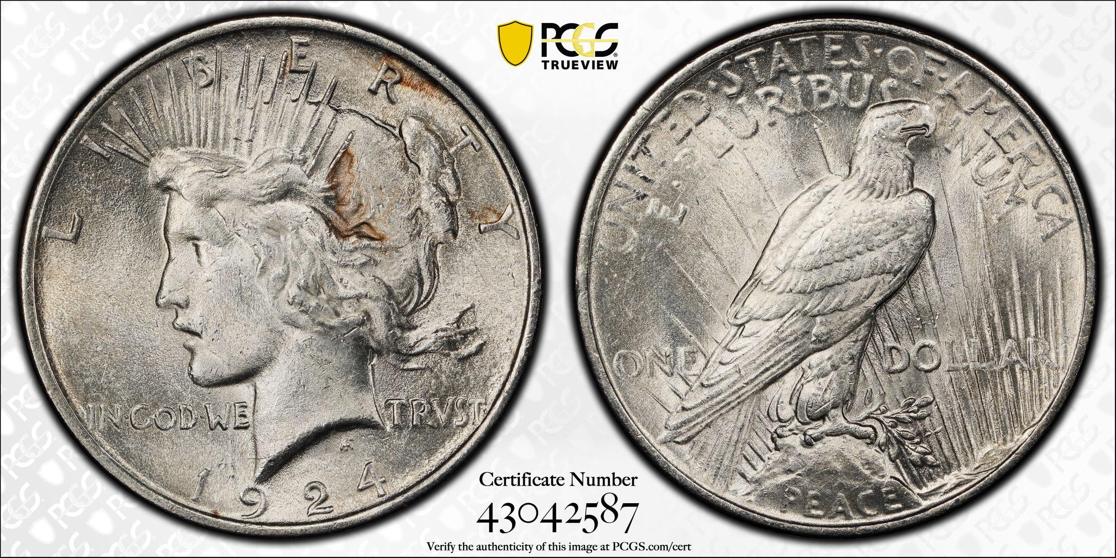 根据 PCGS 认证数据库,请求的认证编号被定义为以下内容:
