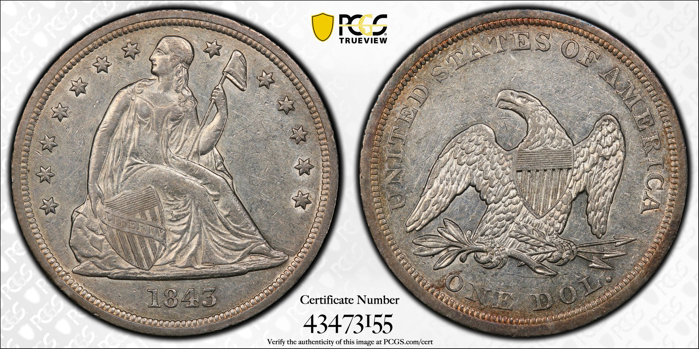 此证书是目前出现在 Reel Coug Set Registry库存和的一个set或多个set,其中包括 Reel Coug Everyman Liberty Seated Dollars