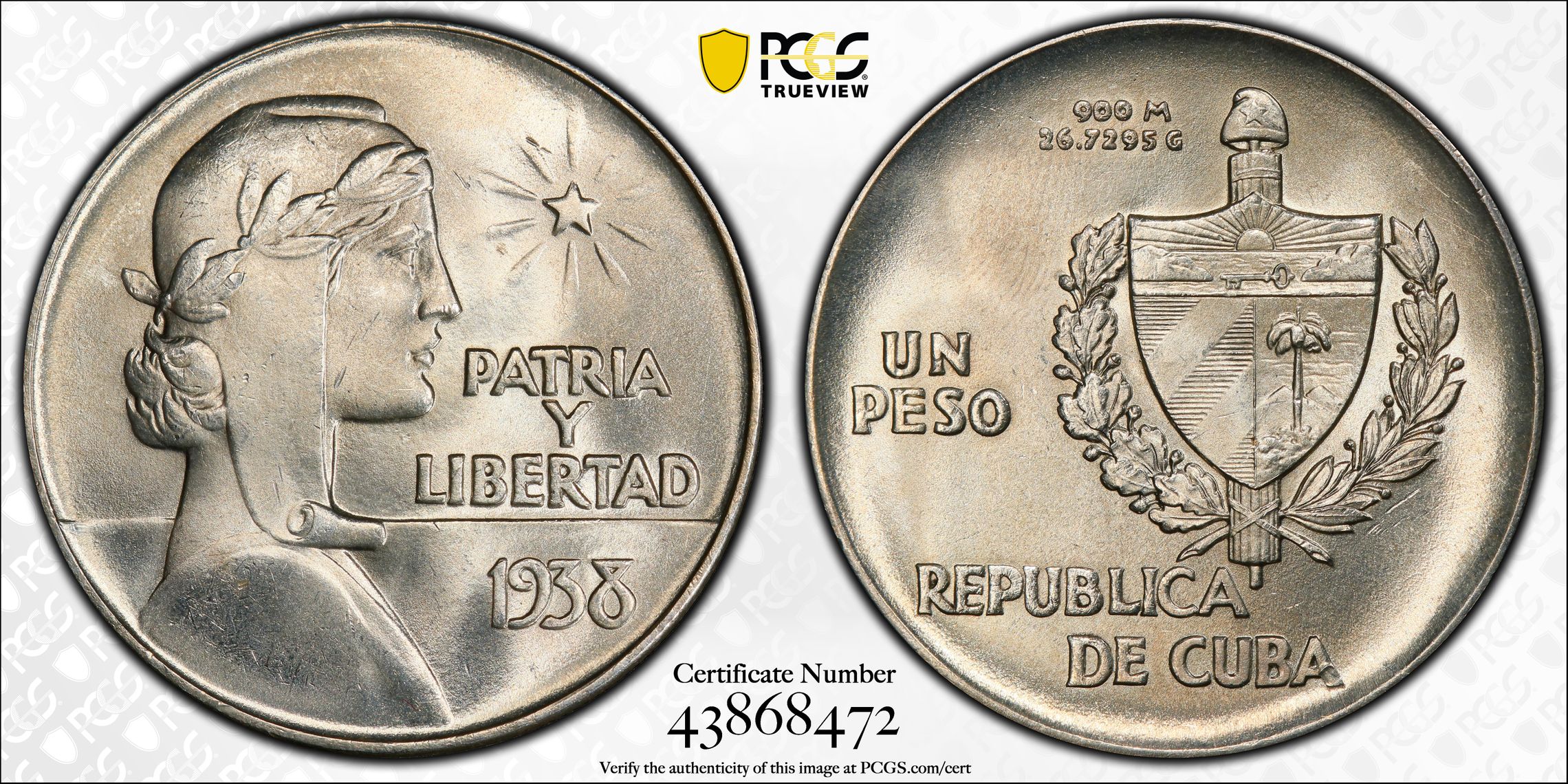 根据 PCGS 认证数据库,请求的认证编号被定义为以下内容: