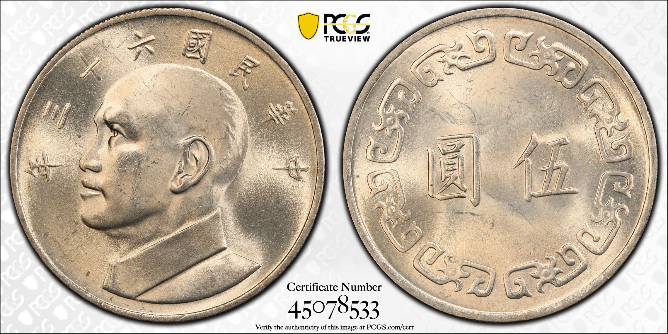根据 PCGS 认证数据库,请求的认证编号被定义为以下内容: