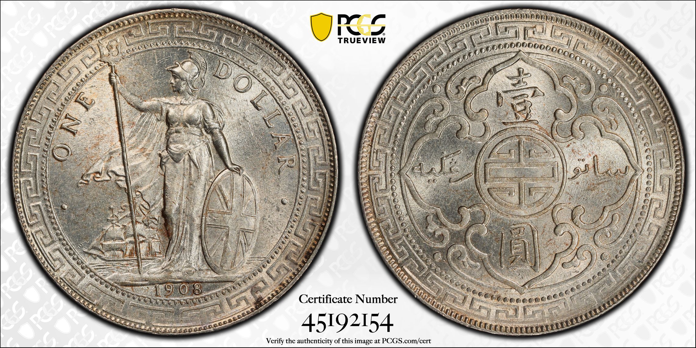 根据 PCGS 认证数据库,请求的认证编号被定义为以下内容: