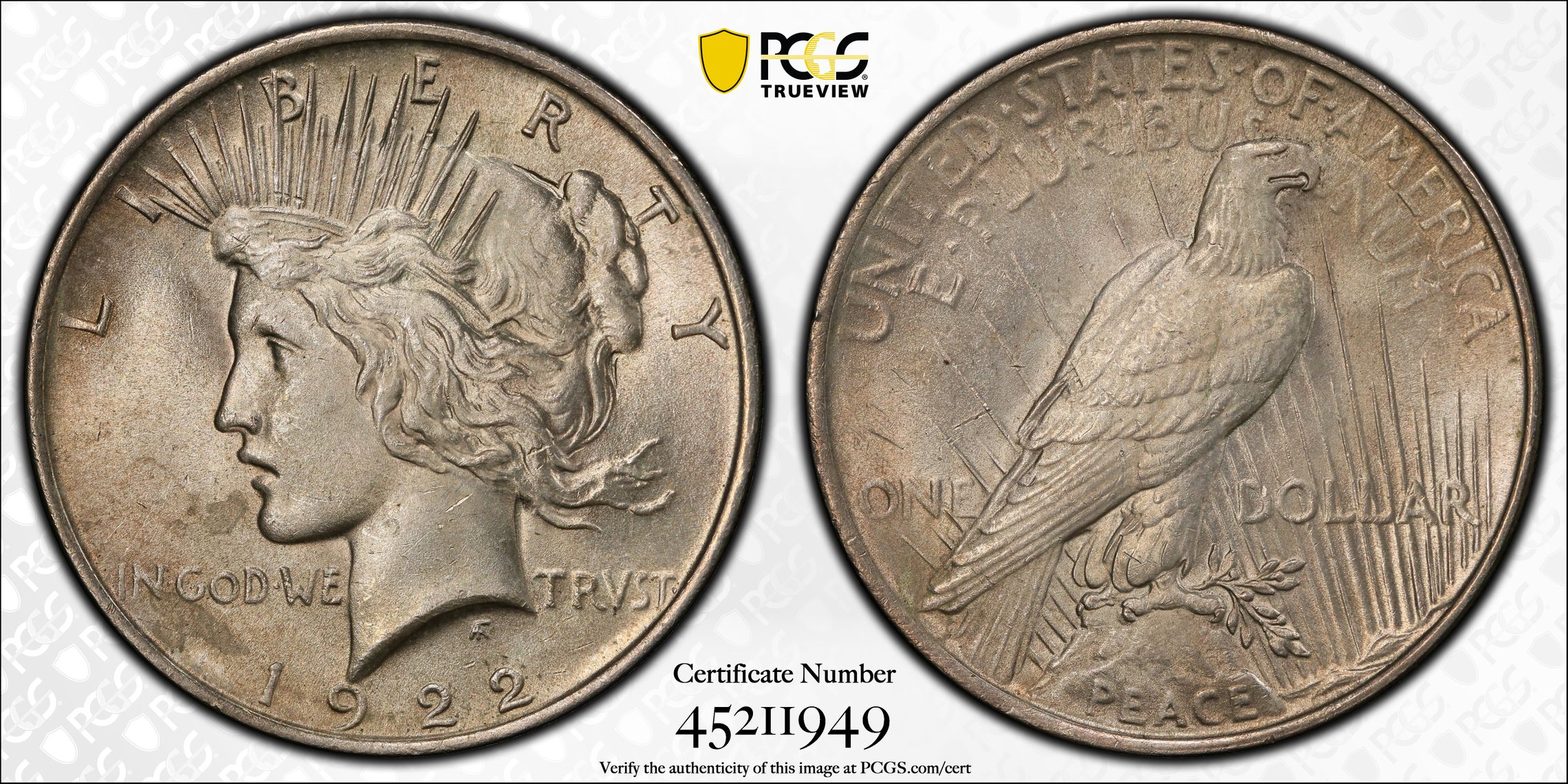 根据 PCGS 认证数据库,请求的认证编号被定义为以下内容: