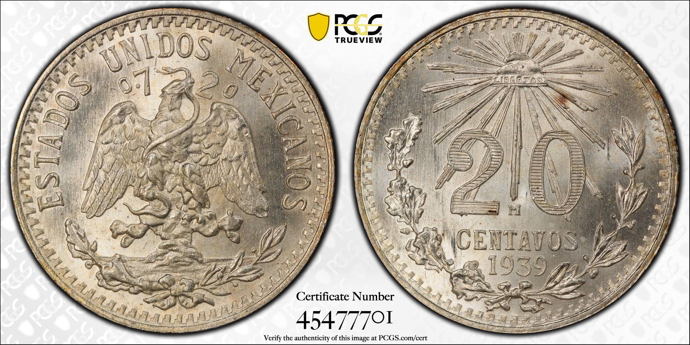 此证书是目前出现在 cca1980 Set Registry库存和的一个set或多个set,其中包括 CB Mex Silver 20 Centavos
