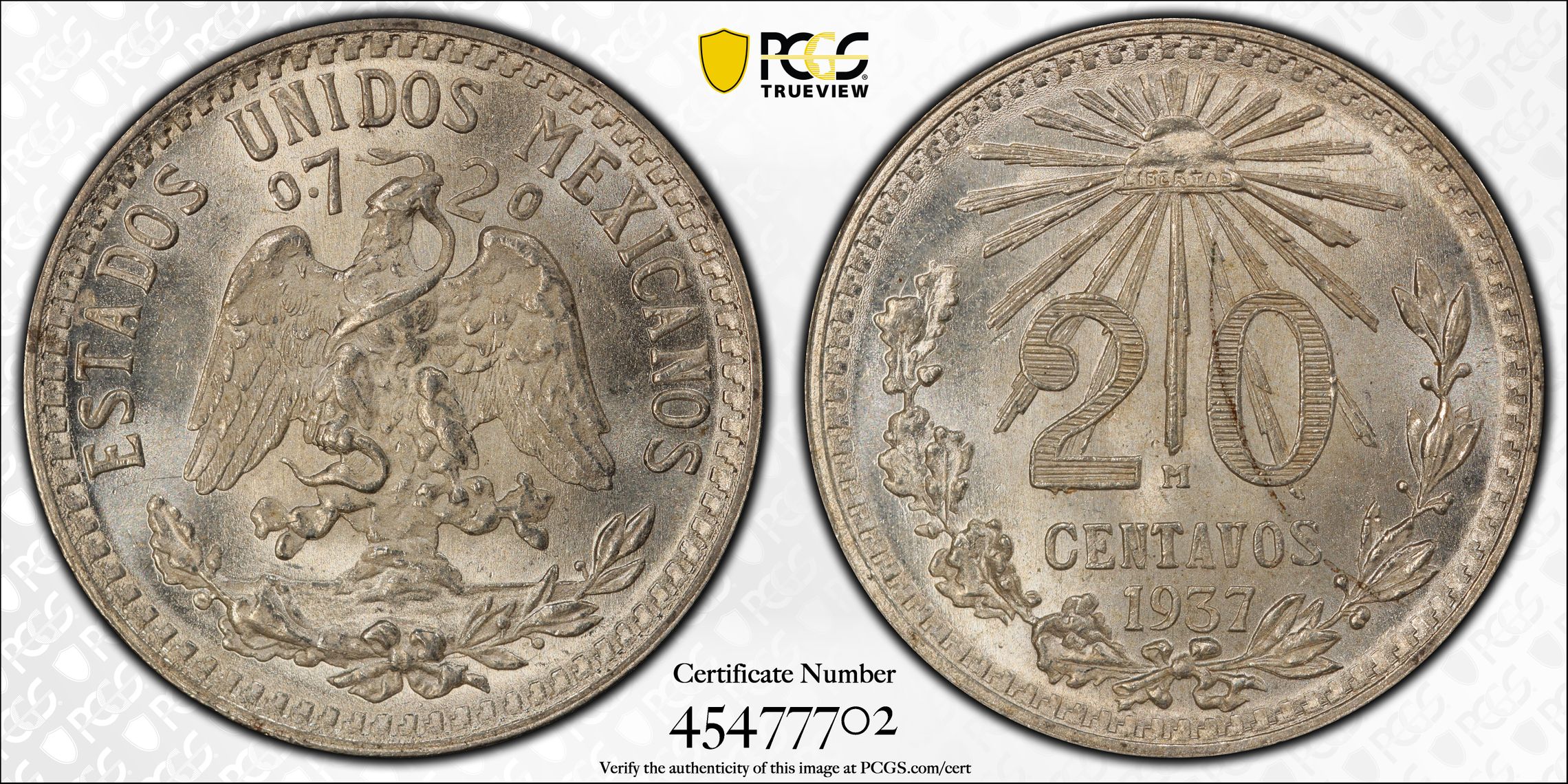 此证书是目前出现在 cca1980 Set Registry库存和的一个set或多个set,其中包括 CB Mex Silver 20 Centavos