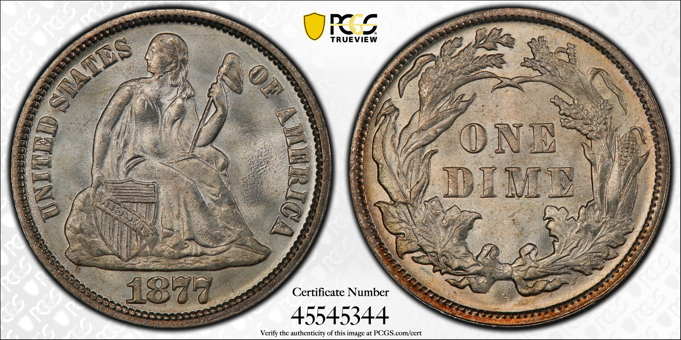 此证书是目前出现在 Hawk Farm Collection Set Registry库存和的一个set或多个set,其中包括 Hawk Farm Collection - Seated Dimes Basic Set