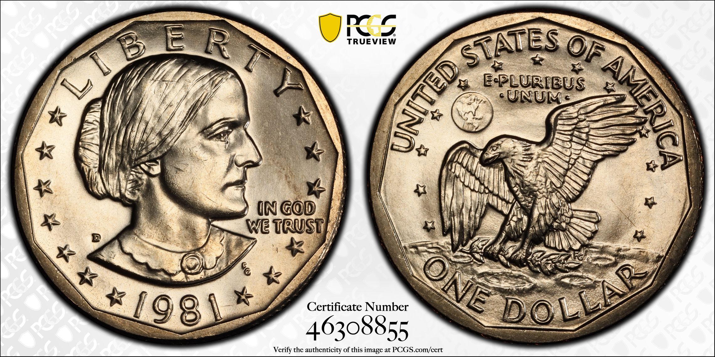 此证书是目前出现在 O'Man Set Registry库存和的一个set或多个set,其中包括 O'Man's - Susan B. Anthony Dollars Basic Set, Circulation Strikes (1979-1981, 1999)