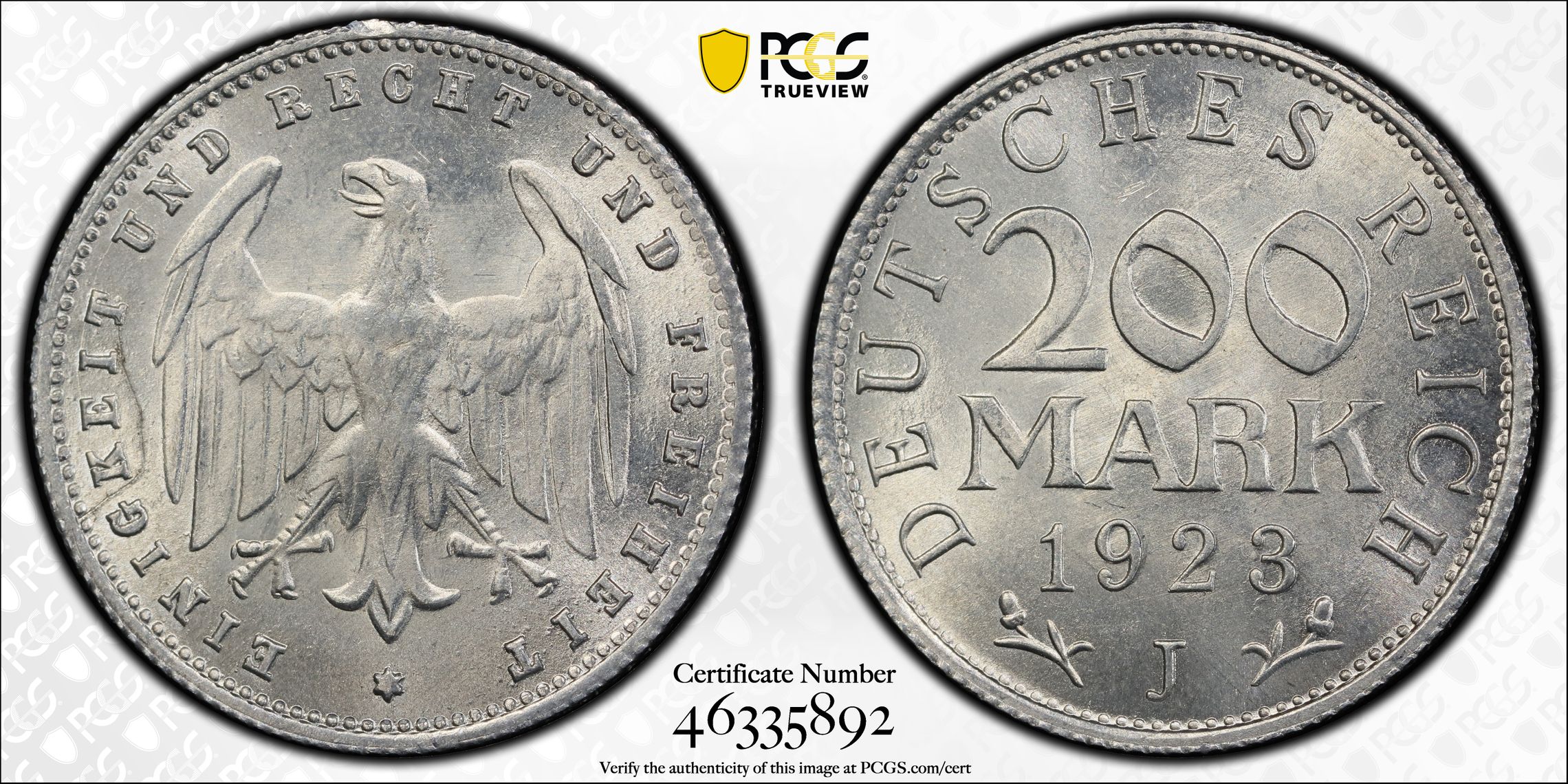 此证书是目前出现在 Mrtjet Set Registry库存和的一个set或多个set,其中包括 Mrtjet German 1923 200 Mark