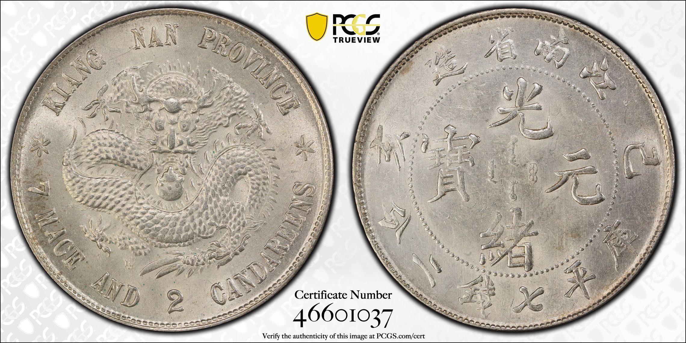 根据 PCGS 认证数据库,请求的认证编号被定义为以下内容: