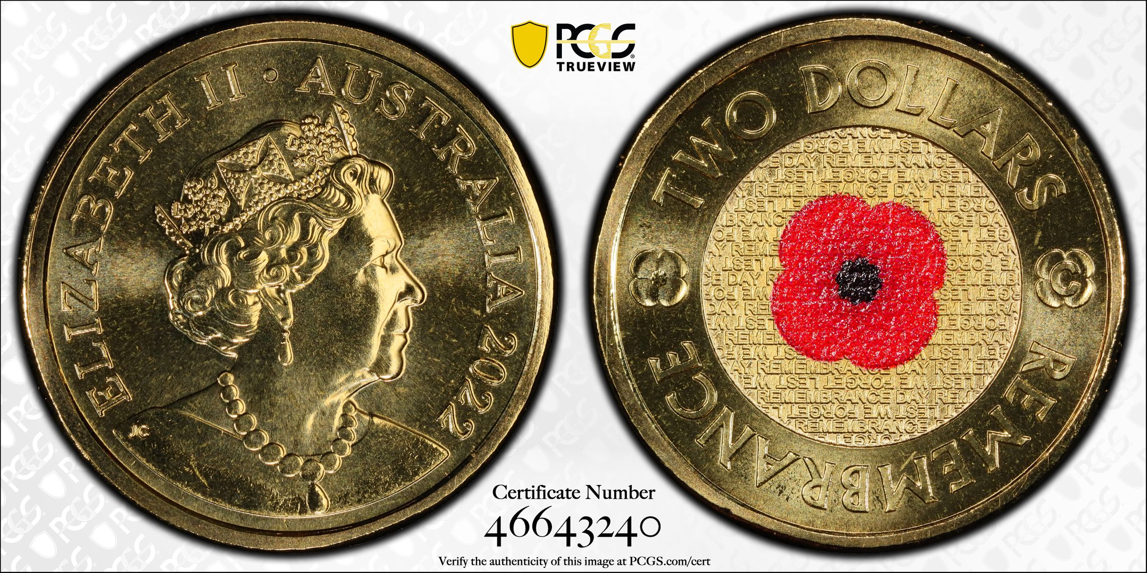 根据 PCGS 认证数据库,请求的认证编号被定义为以下内容: