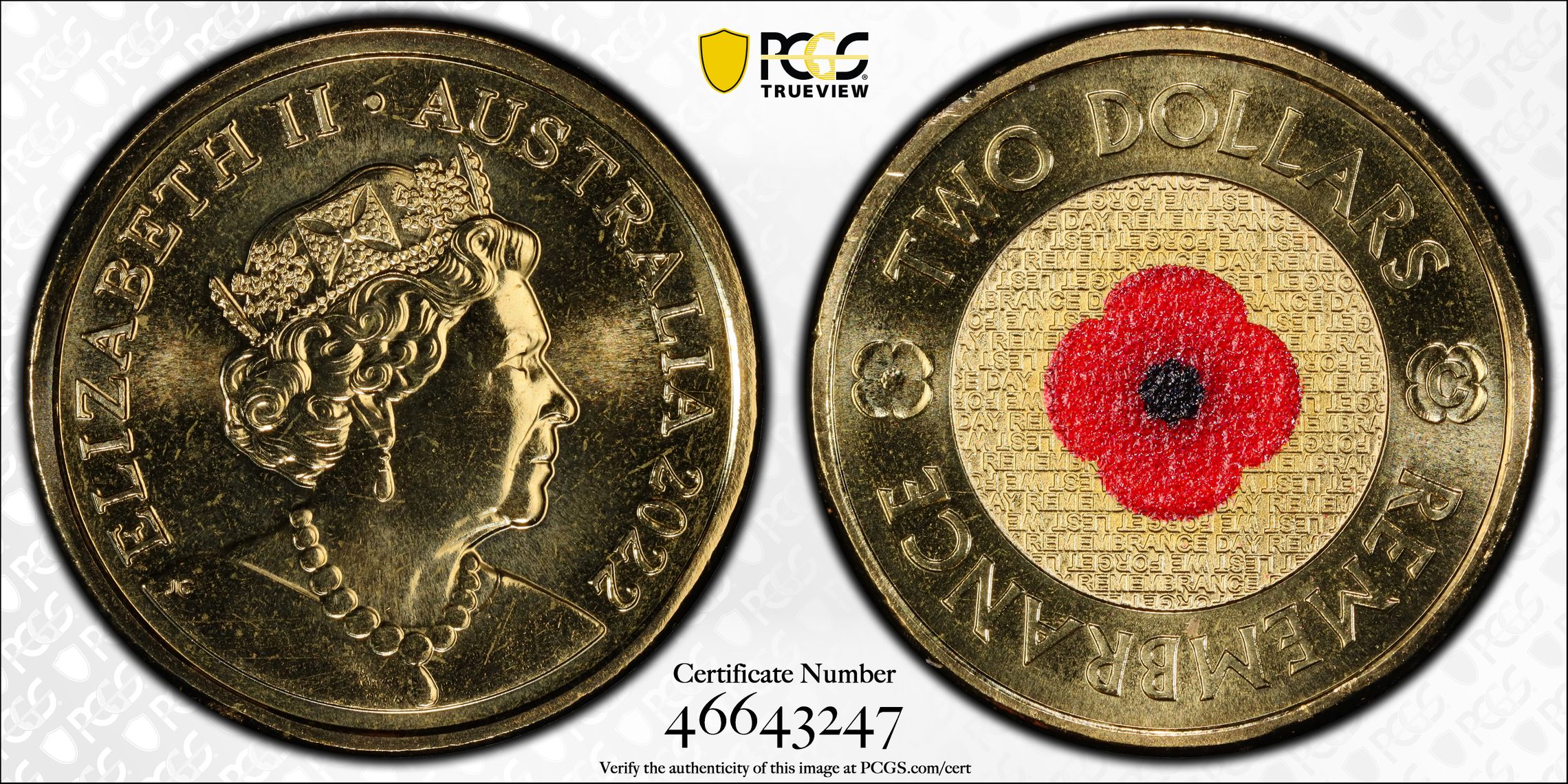 根据 PCGS 认证数据库,请求的认证编号被定义为以下内容: