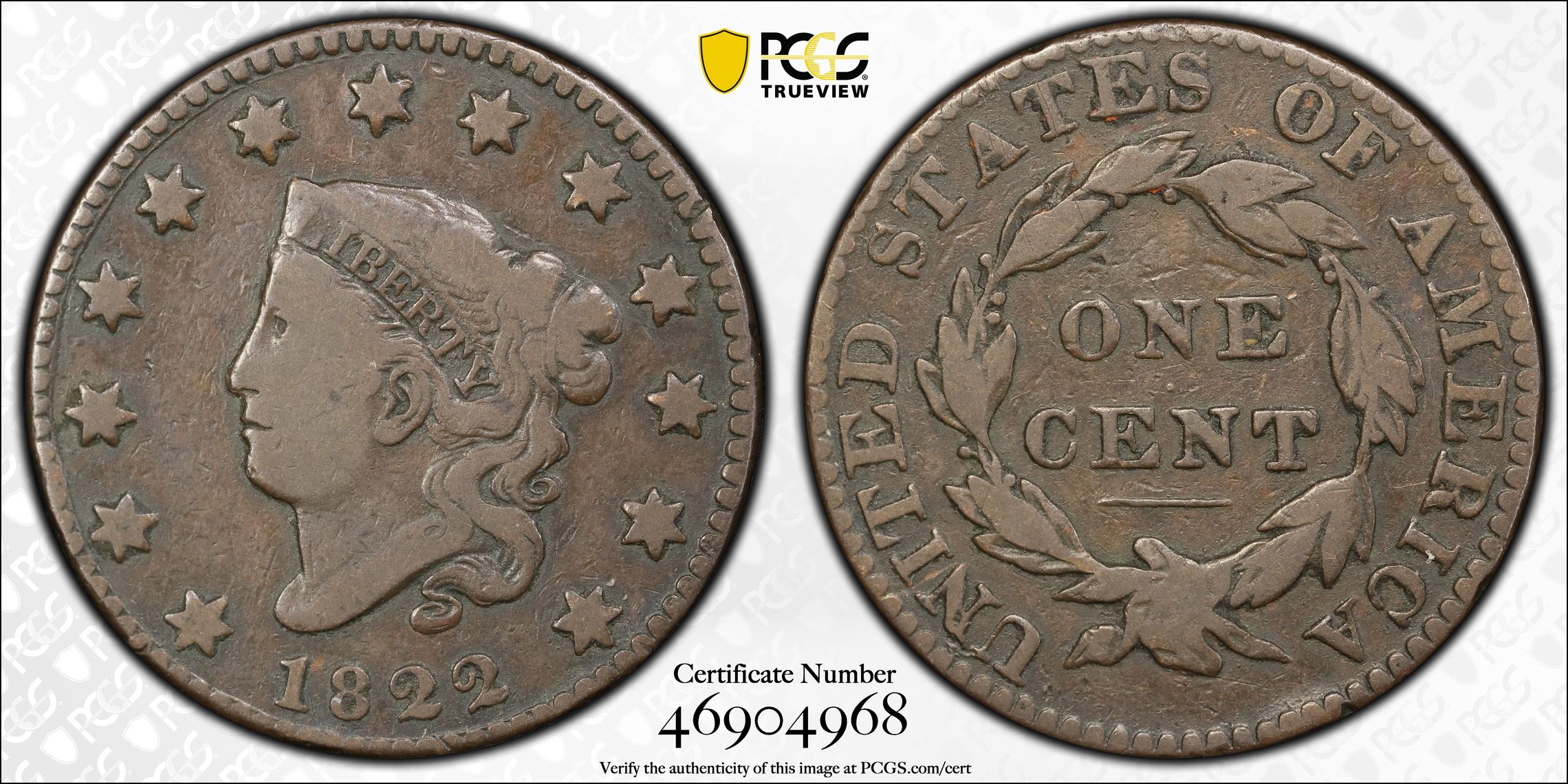 根据 PCGS 认证数据库,请求的认证编号被定义为以下内容: