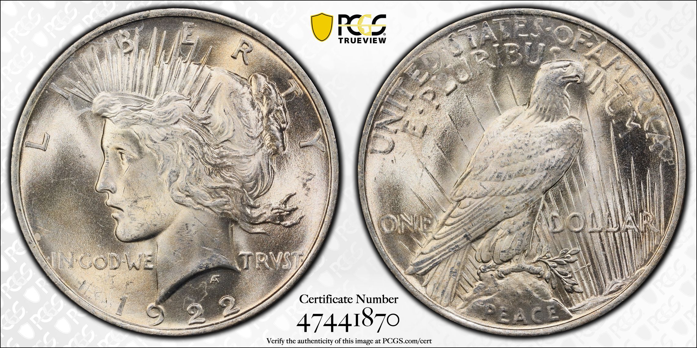 根据 PCGS 认证数据库,请求的认证编号被定义为以下内容: