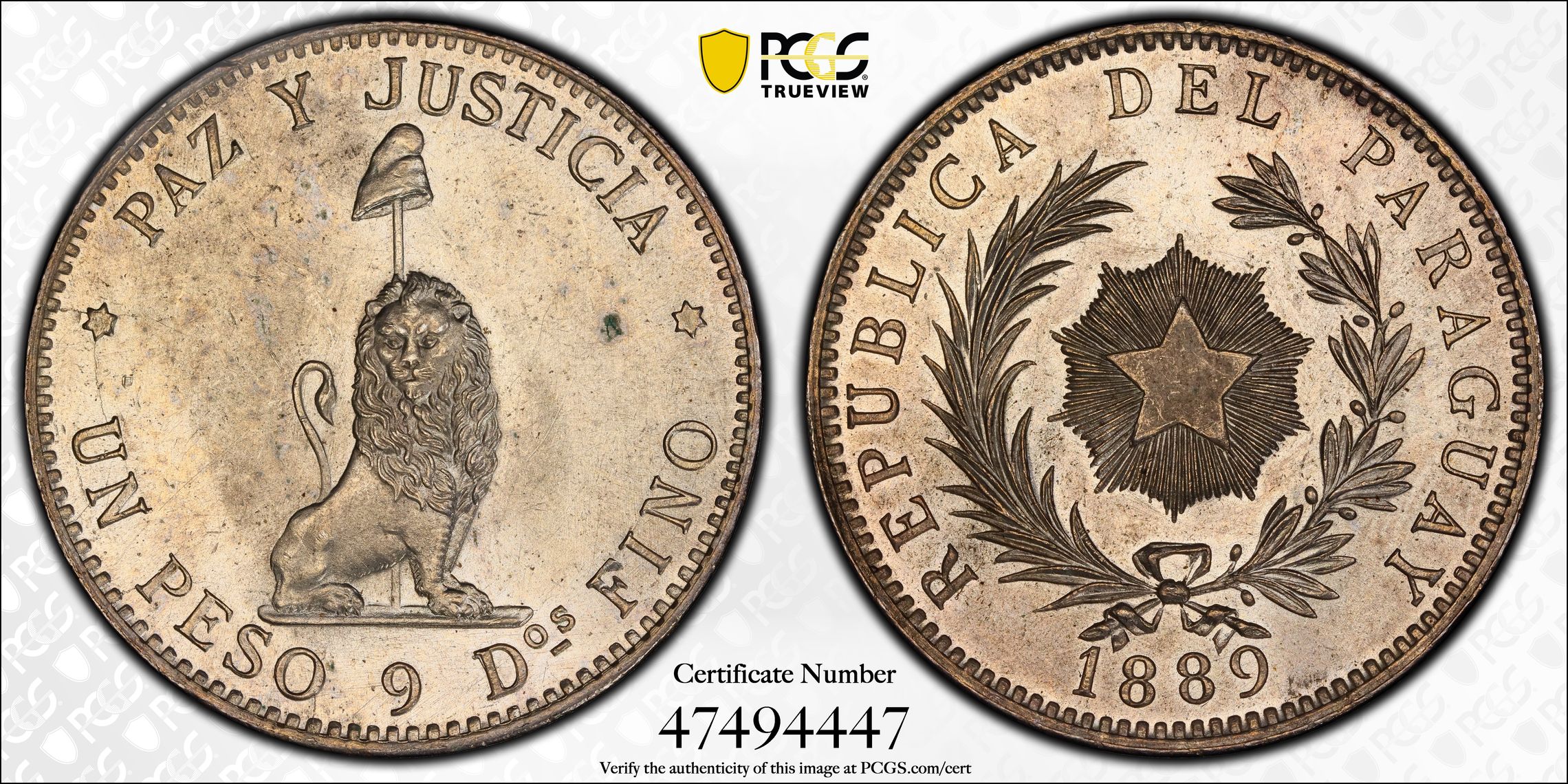 根据 PCGS 认证数据库,请求的认证编号被定义为以下内容: