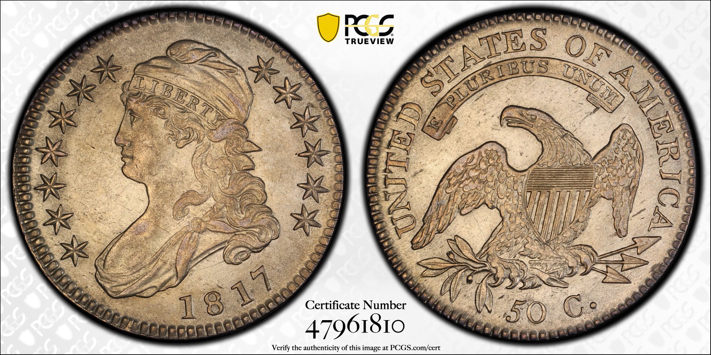 此证书是目前出现在 footinsteve Set Registry库存和的一个set或多个set,其中包括 Steve's Capped Bust Half Dollars Major Variety Set without Reeded Edges (1807-1836)