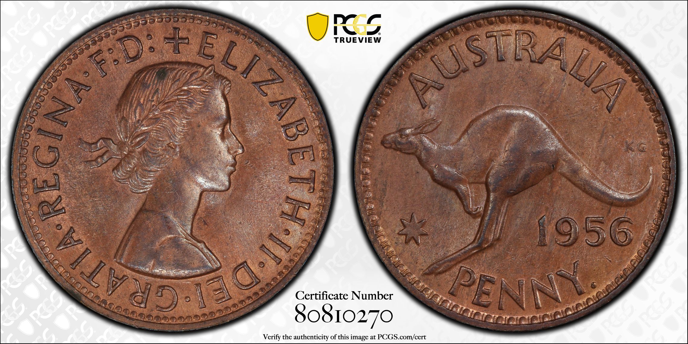 PCGS 钱币信息 | 认证编号 #80810270 - 1956 Y. (p) Australia 1D