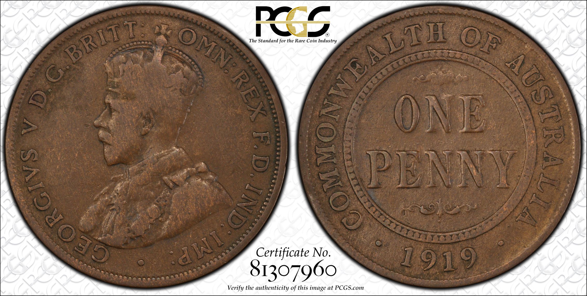 PCGS 钱币信息 | 认证编号 #81307960 - 1919 .//. Australia 1D
