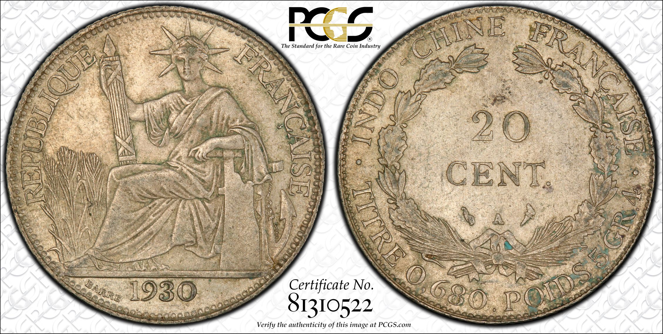 根据 PCGS 认证数据库,请求的认证编号被定义为以下内容: