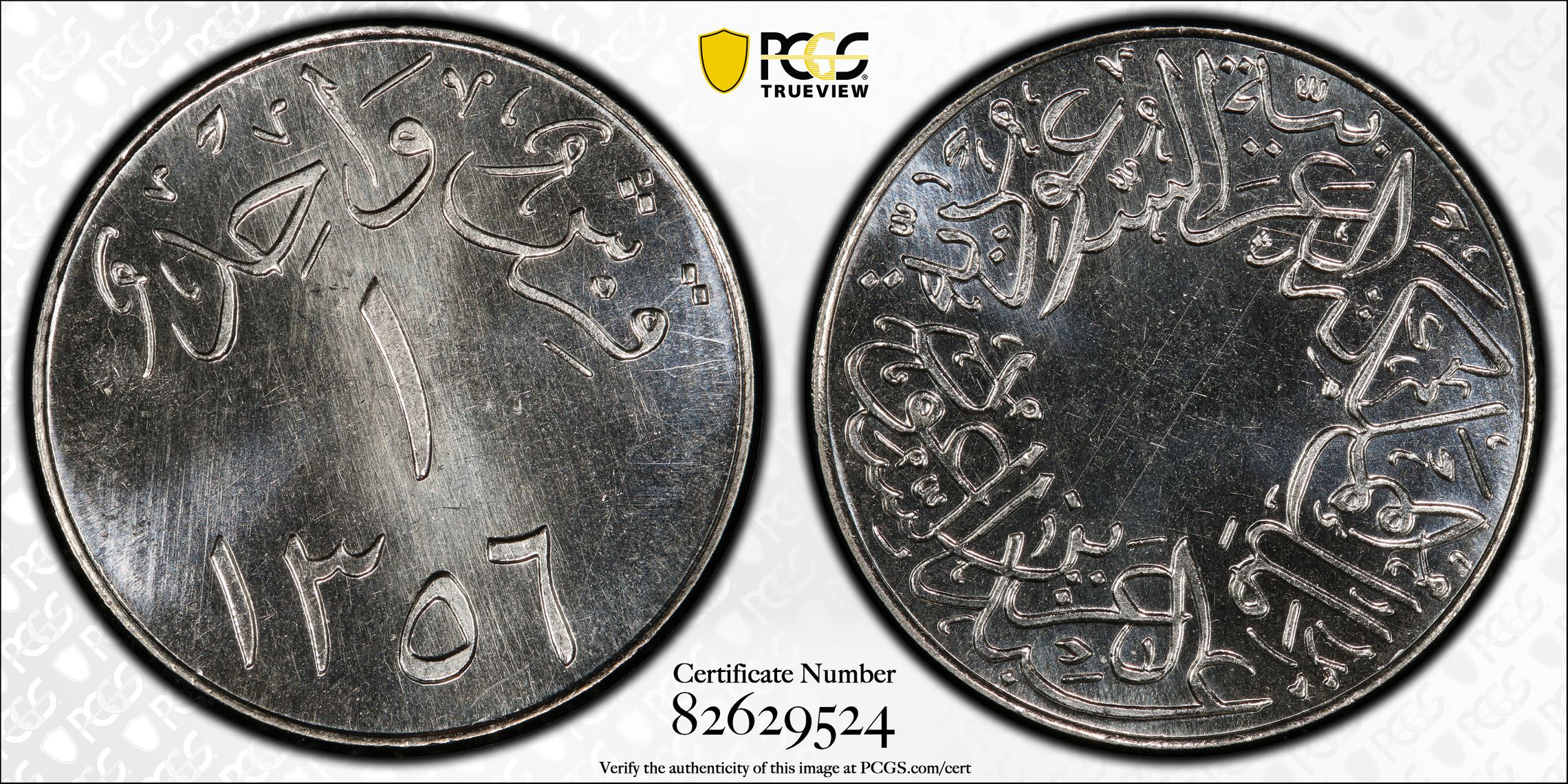 此证书是目前出现在General Error.Set Registry库存和的一个set或多个set,其中包括 Saudi 1356 Specimen
