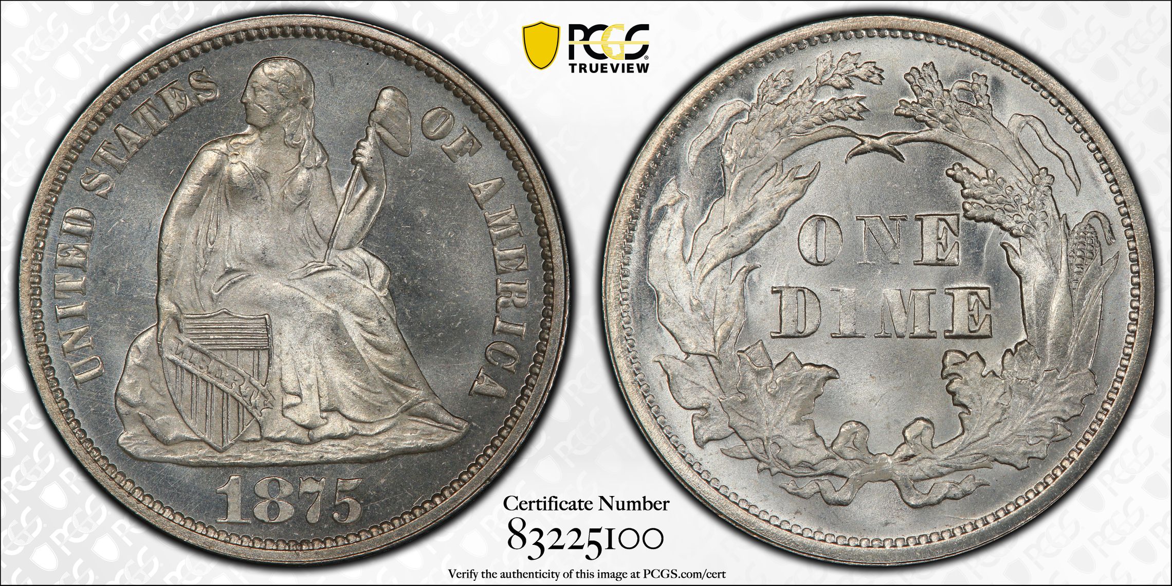 此证书是目前出现在 DLH Set Registry库存和的一个set或多个set,其中包括 D. L. Hansen Seated Dimes Circulation & Proof (1837-1891)