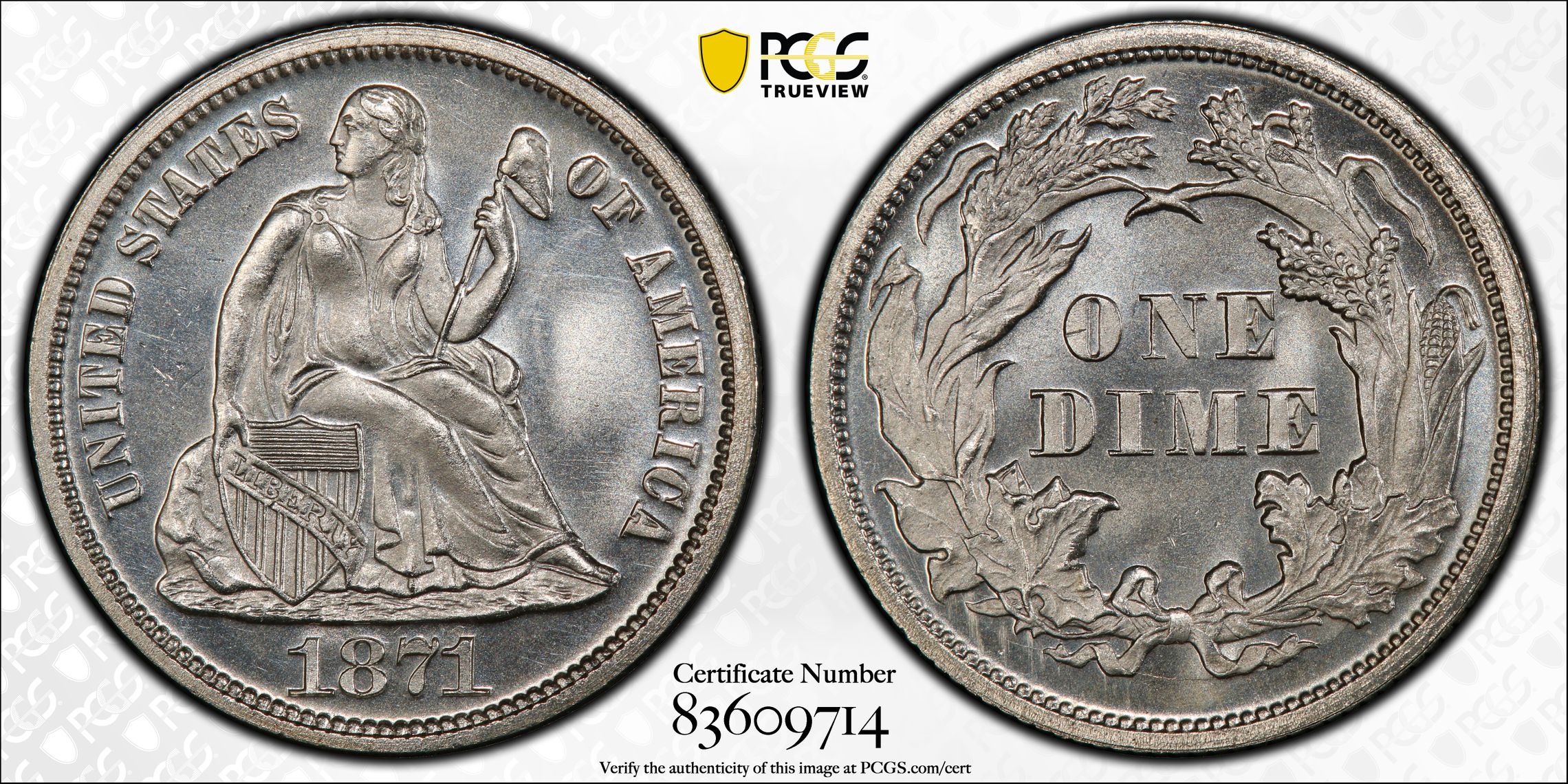 此证书是目前出现在 DLH Set Registry库存和的一个set或多个set,其中包括 D. L. Hansen Seated Dimes Circulation & Proof (1837-1891)