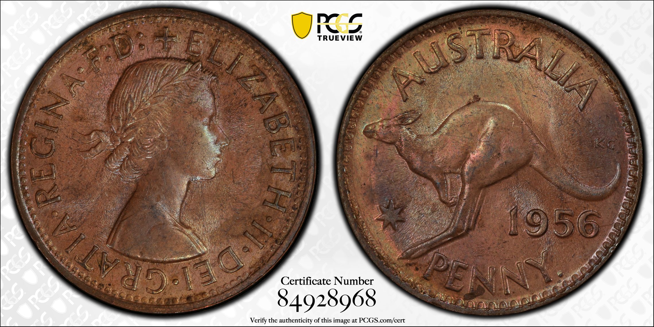 PCGS 钱币信息 | 认证编号 #84928968 - 1956 Y. (p) Australia 1D
