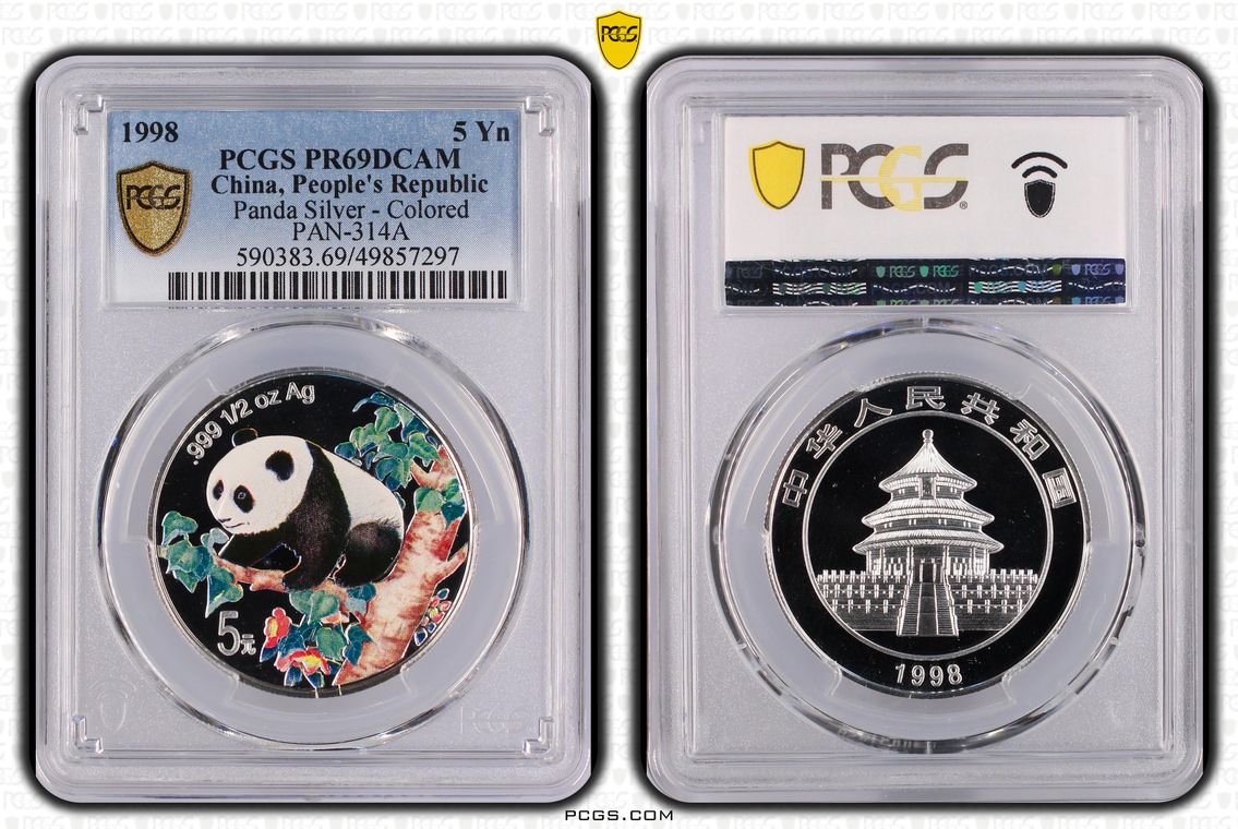 1998 5 Yn Panda Silver - Colored PAN-314A PR69DCAM