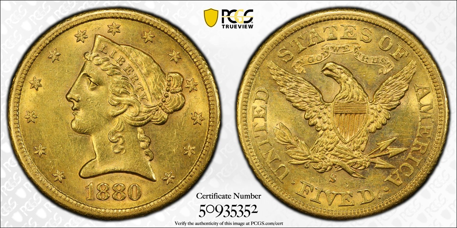 1880-S $5 AU58
