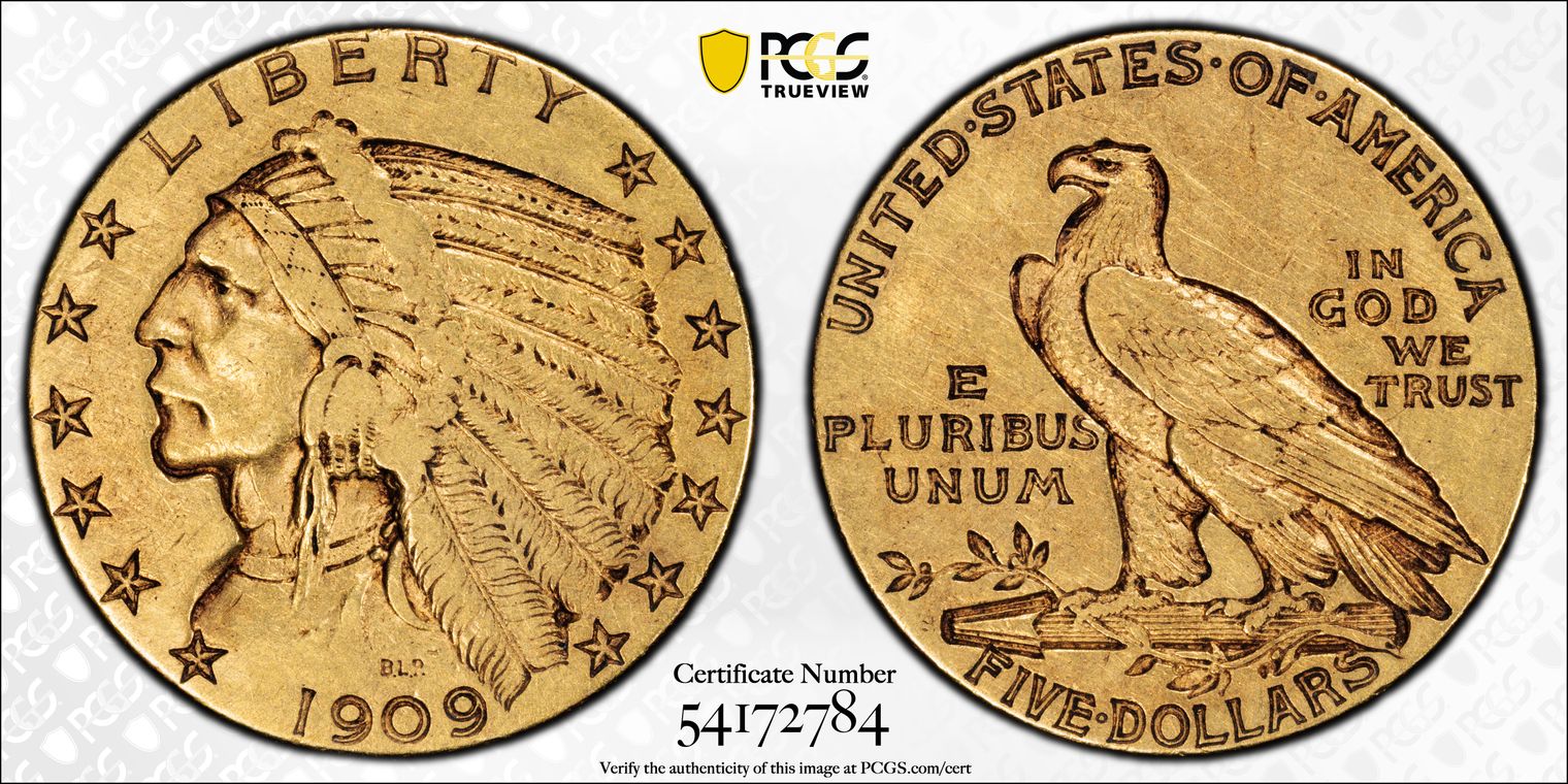 1909-D $5 XF45