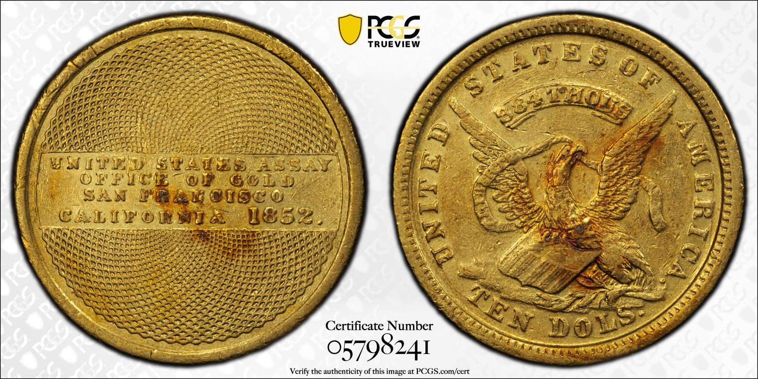 1852 $10 U.S. Assay Office, K-12 AU55