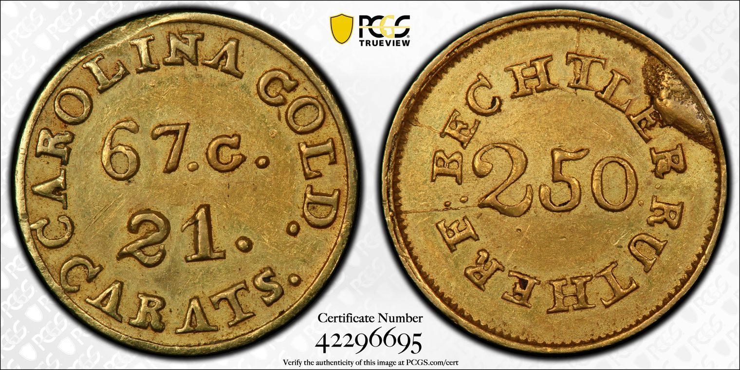 (1837-42) $2.50 C. Bechtler, 67 Grains, 21 Carats MS62