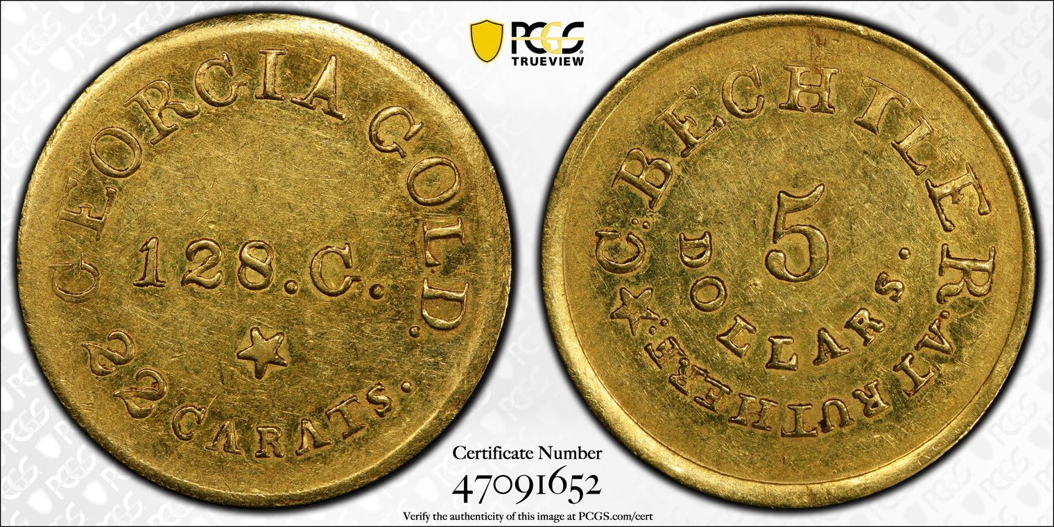 (1842-52) $5 A. Bechtler 128 Grains, 22 Carats MS61
