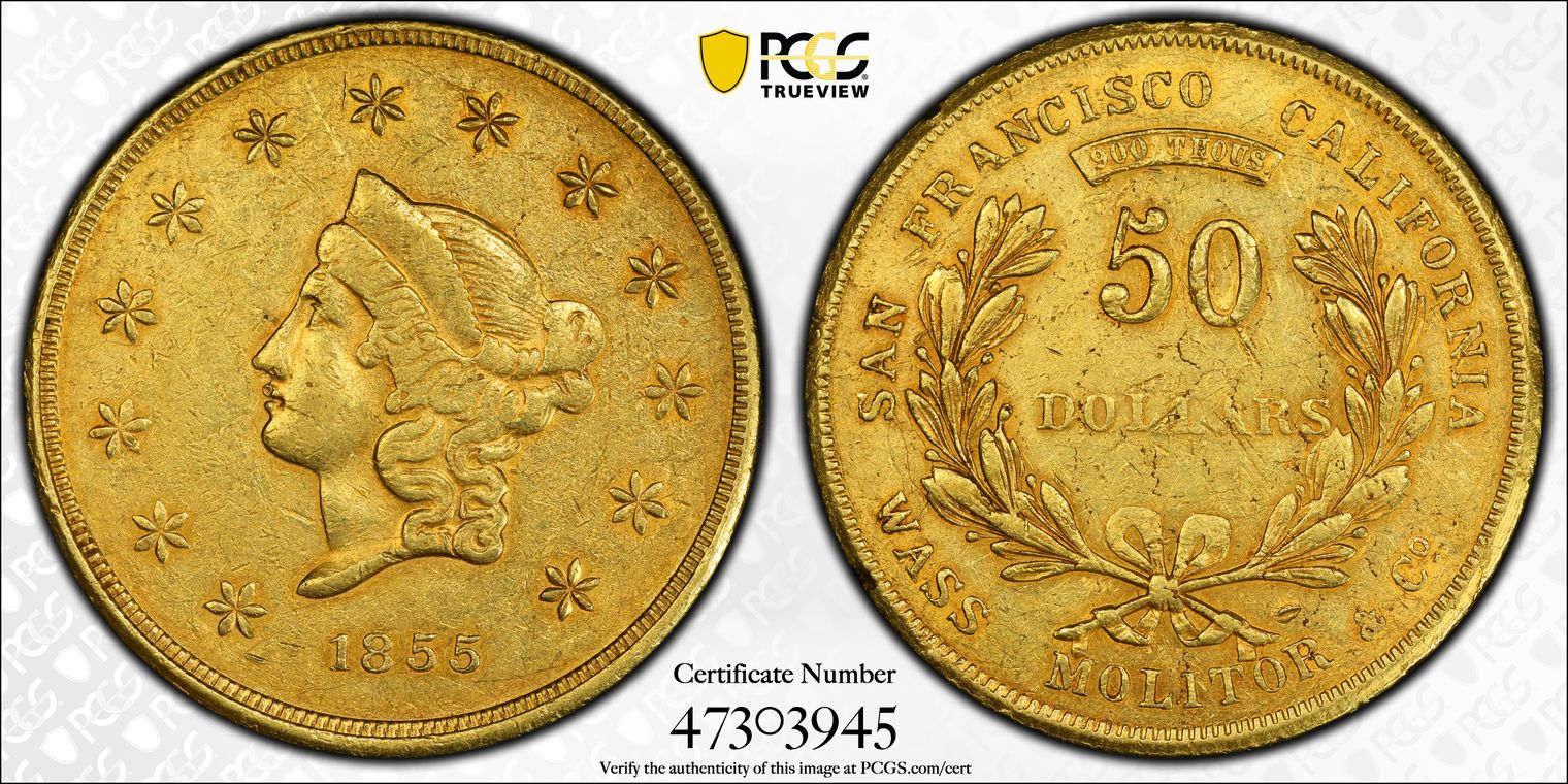1855 $50 Wass, Molitor & Co. AU53
