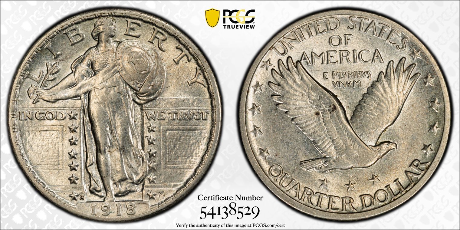 1918-S 25C AU55FH