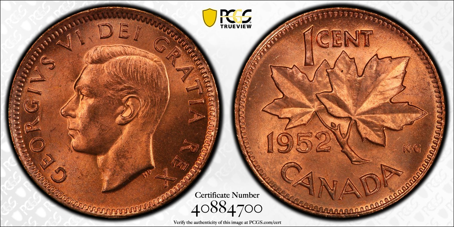 An incredible superb gem example, the first 1945 Canada 1 Cent to be graded MS-66 Red by PCGS and currently the only example graded MS-66 across all major grading companies; fully lustrous with a superior strike, quite possibly the finest surviving example; cross-graded ICCS MS-66 Red [XZG 895]
