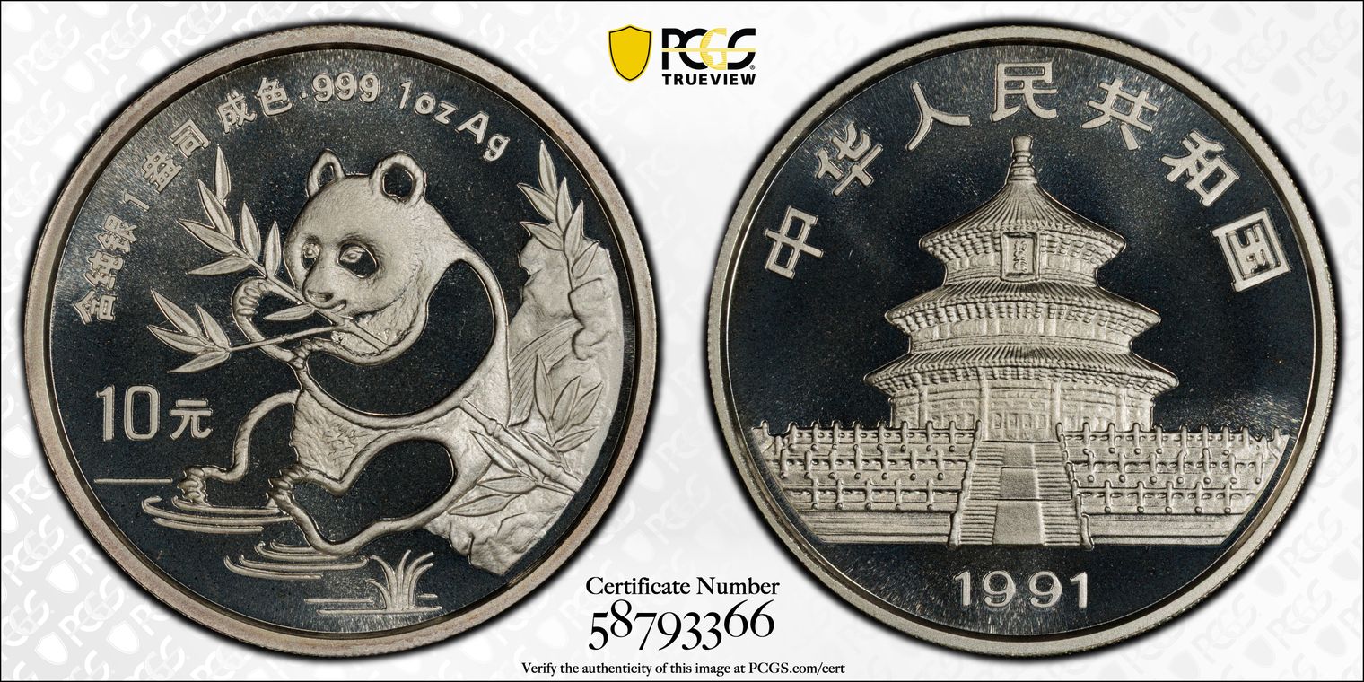 1991(沈) 10 Yn Panda Ag Small Date PAN-155A MS69