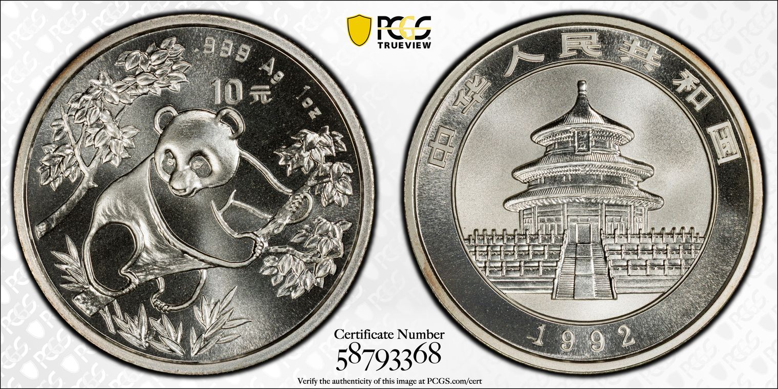 1992(沈) 10 Yn Panda Ag Small Date PAN-182B MS69