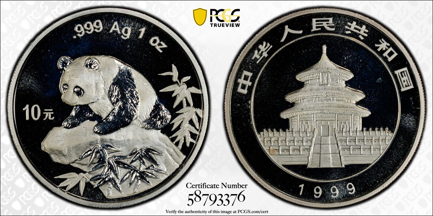 1999(沈) 10 Yn Panda Ag Lg Date Plain 1 PAN-323B MS69